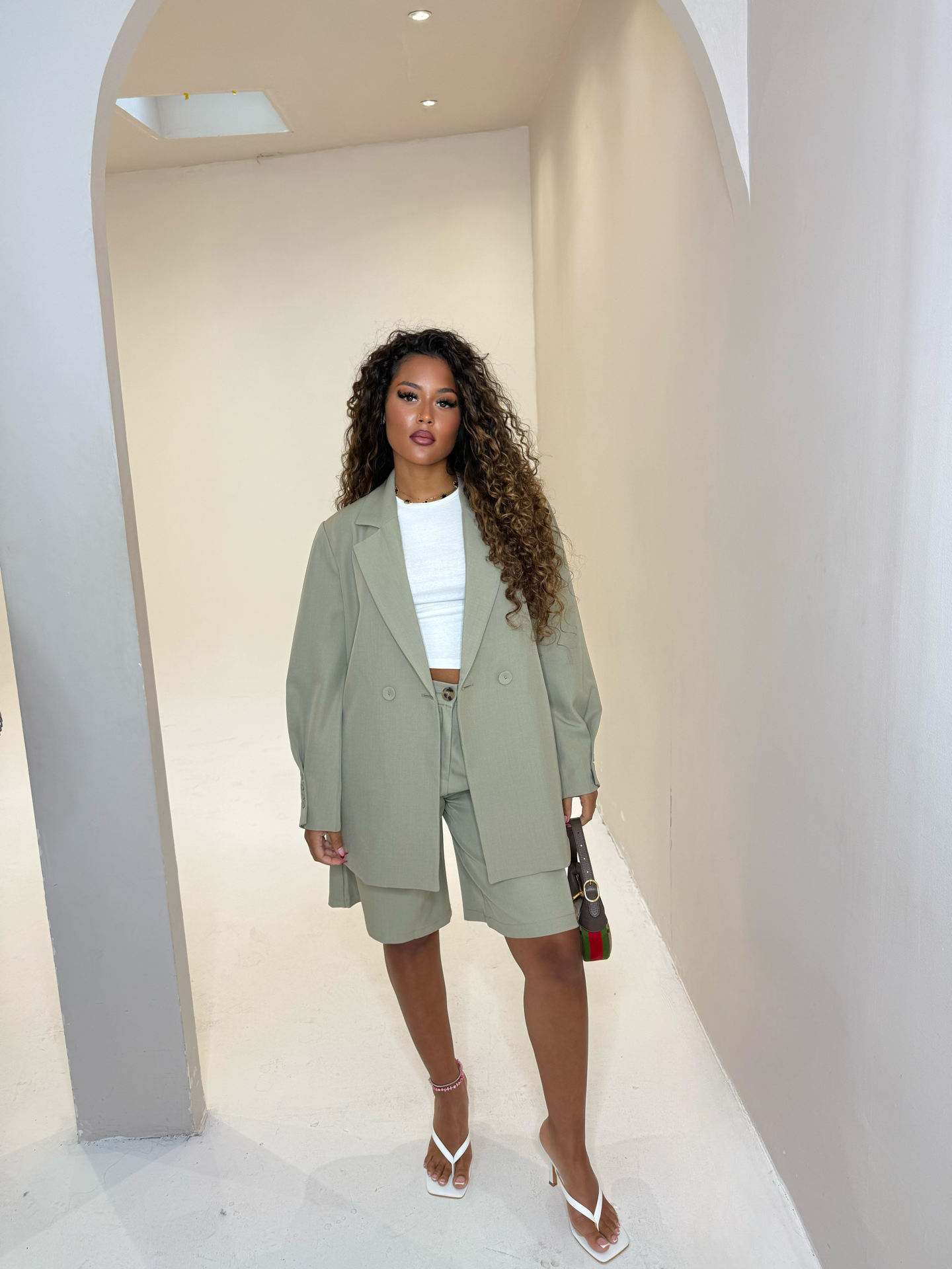Ensemble short avec blazer ceinture